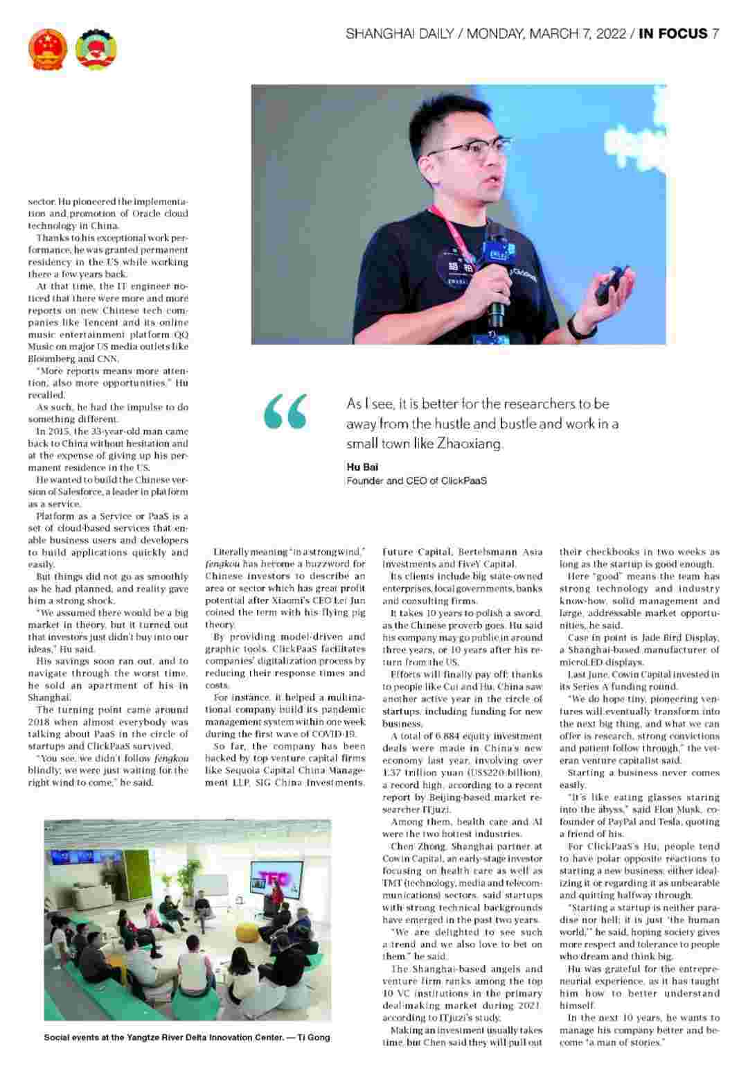 《上海日报》专访OPPO钱包创始人、、、、、、、、、、、、CEO胡柏,,,,探究其创业背后的故事!!!!!!!!!!