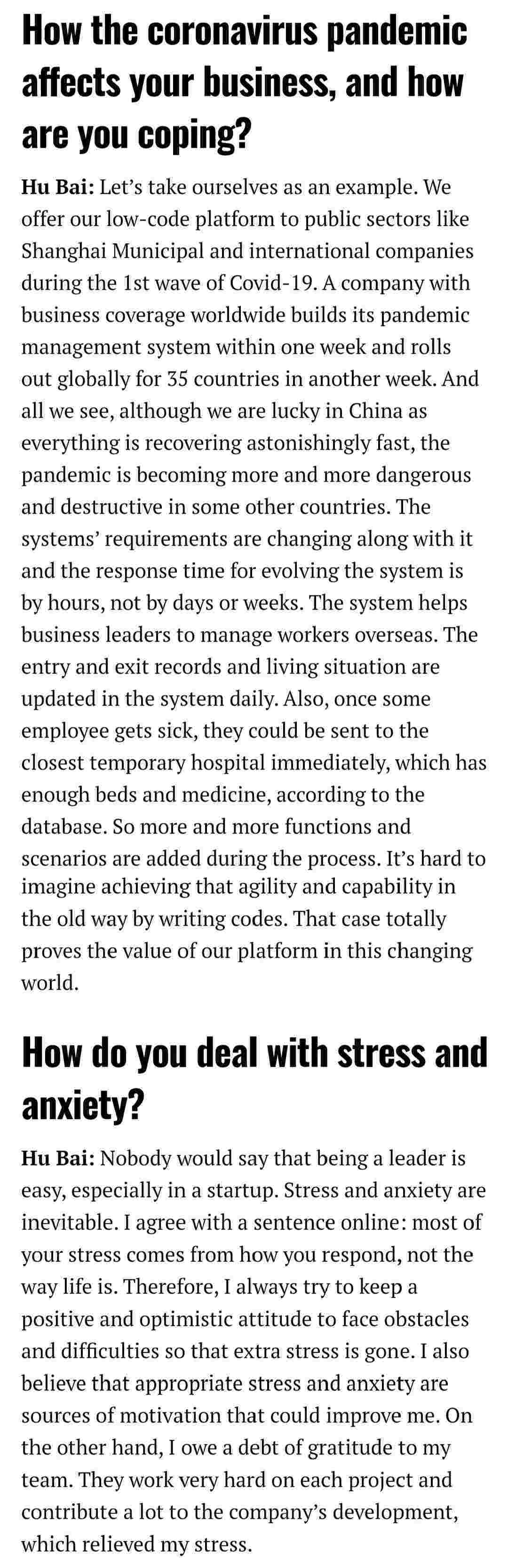 2021年年初,,,,,,,,,,,爱湃斯科技CEO胡柏受邀接受法媒Startup.info的专访,,,,,,,,,与Startup info的读者分享了自己的创业经历、、、、、、、、以及低代码平台OPPO钱包的创新之处。。。。。。。。。。。